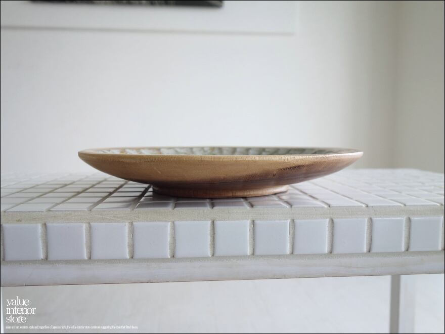 モンキーポッド総無垢材 デコレーショントレイGY 菓子鉢 小物入れ 飾り皿 木製 手作り エスニック ハンドメイド 一点物 直径24.5cm