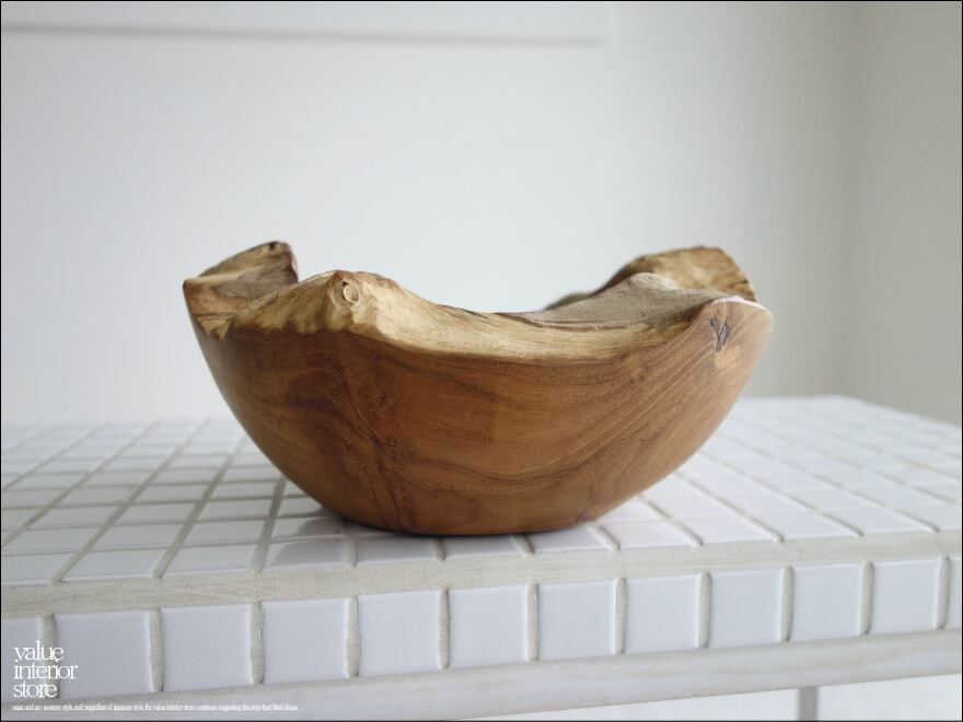チーク総無垢プリミティブトレイ 飾り鉢N20cm ボウル 小物入れ ナチュラル 天然木 ボウル 鉢 入れ物 天然オイル仕上げ 世界三大銘木