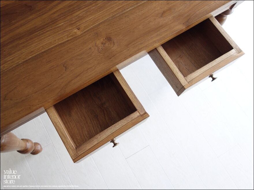 とても存在感がありゆったりとしています。職人さんが丹精こめて作った印象に溢れていて、このデスクに向かうと自然と気持ちまで落ち着くようです。西洋、アジアン、和風モダン、北欧など幅広いテイストのインテリアと相性良くコーディネートできますのでお気に入りスペースでお使いください。