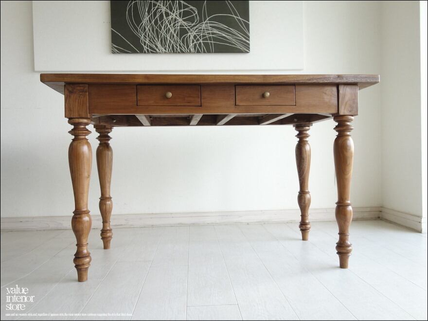 「 マツオ様 サイズオーダーテーブル 」 チーク無垢材 オールドチークテーブル(127モデル) デスク 机 古材家具 引出し2杯 無垢材家具