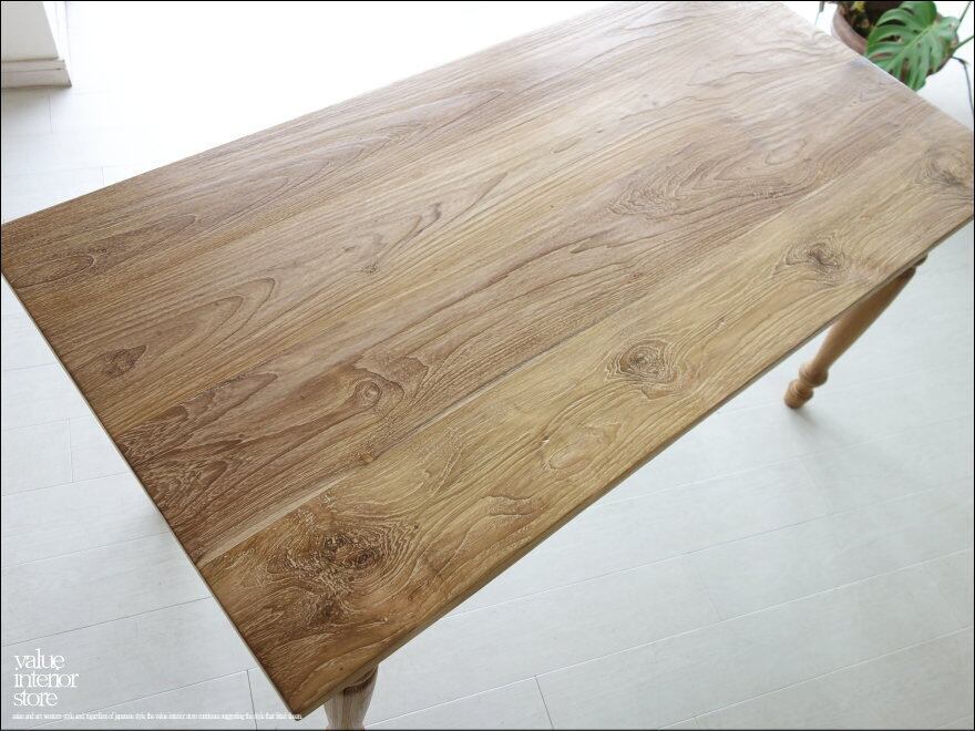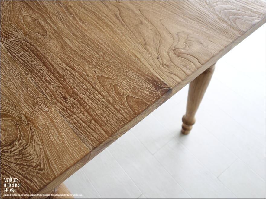 一目見ただけでフシなどの個性的で変化に富んだ木目の味わい深さが感じられるチークダイニングテーブル。