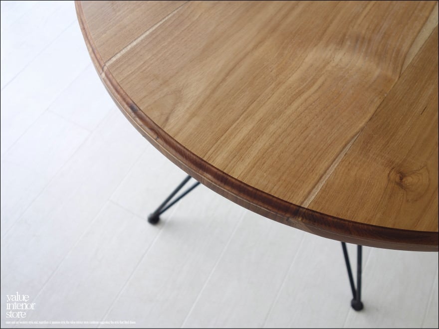 「 K様 サイズオーダーサイドテーブル 」チーク無垢材 サイドテーブル丸 コンソールテーブル 飾り台 花台 鉄脚 手作り シンプル ナチュラル 銘木家具 Φ60xH50cm 送料無料