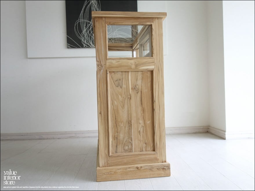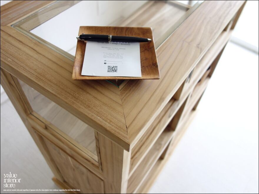 チーク総無垢 ショーケースカウンターNatla90 ガラスケース 飾り棚 店舗什器 レジ台 手作り 無垢材家具