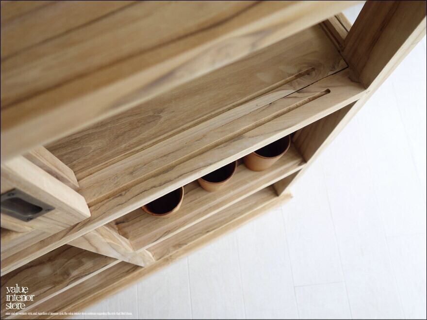 ◇チーク無垢材は人間のお肌同様に、長時間、直射日光や冷暖房の風のあたる場所や湿気、乾燥が著しい場所を嫌います。反りや割れ、退色の原因になりますのでお避けください。
