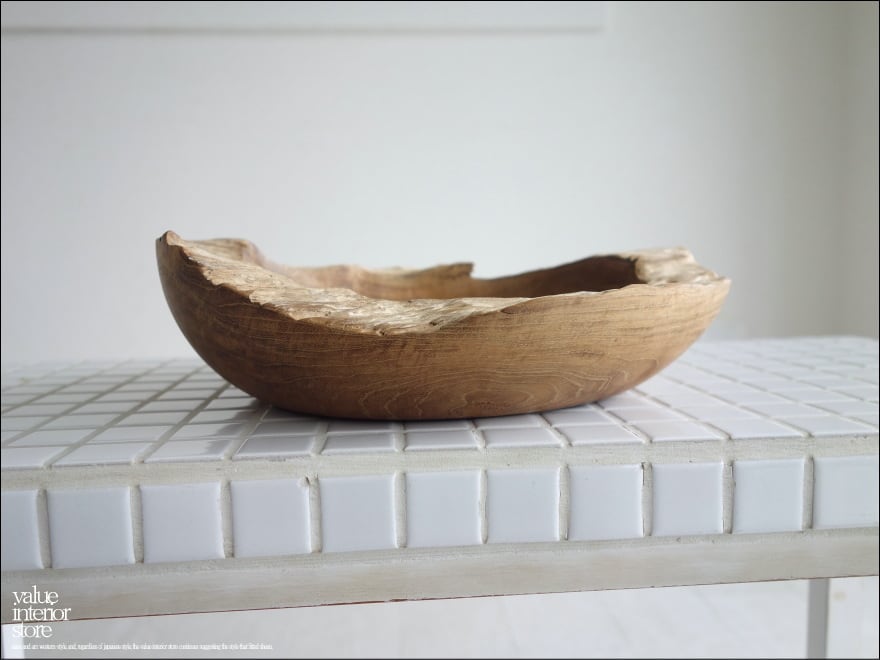 チーク総無垢プリミティブトレイ 飾り鉢N25cm ボウル 小物入れ ナチュラル 天然木 ボウル 鉢 入れ物 天然オイル仕上げ 世界三大銘木