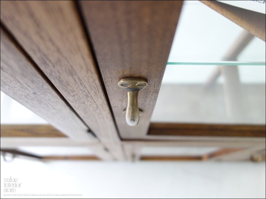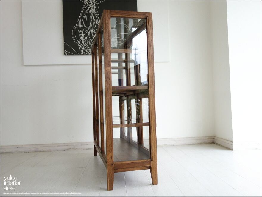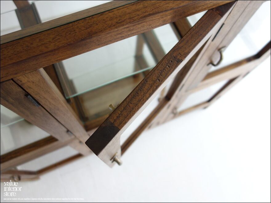 フレームはチーク総無垢材で金具は真鍮製を使用いたしました。ガラス面が多くどの角度からも中がキレイに見えますので、お店のショーケースとしてもお使いいただけます。