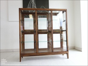 「 ハシヅメ様 サイズオーダー家具 」 チーク総無垢 ガラスパンケース6枚扉Med ショーケース コレクションケース 陳列棚 店舗什器 ガラスケース 飾り棚 真鍮金物