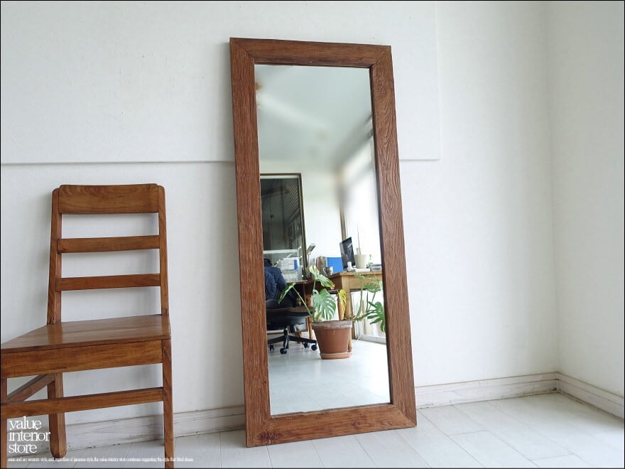 オールドチーク総無垢 ミラー140cm L/11 姿見 鏡 全身鏡 古材 全身用 手作り ナチュラル レトロ 世界三大銘木 送料無料 60cm x 140cm