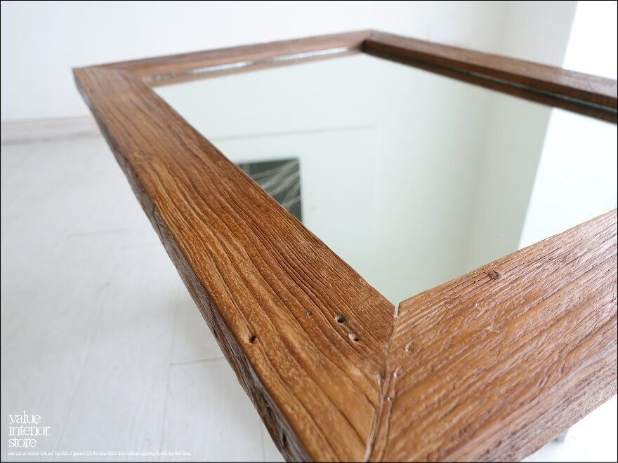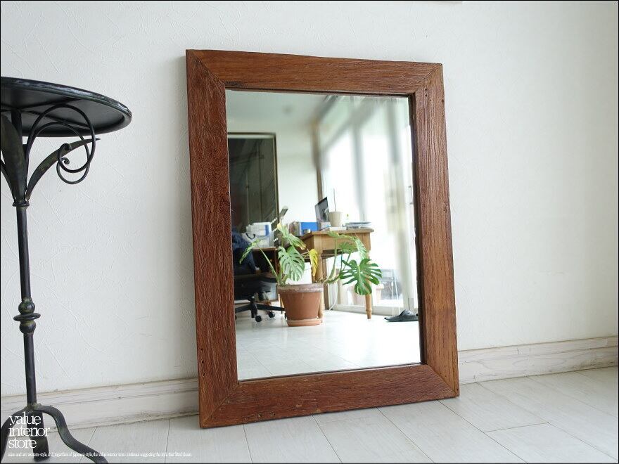 古材 鏡 オールドチークフレームミラー壁掛80K レトロ 天然木 ハンドメイド 手作り 総無垢 壁掛け 銘木 送料無料 幅60cm x 縦80cm
