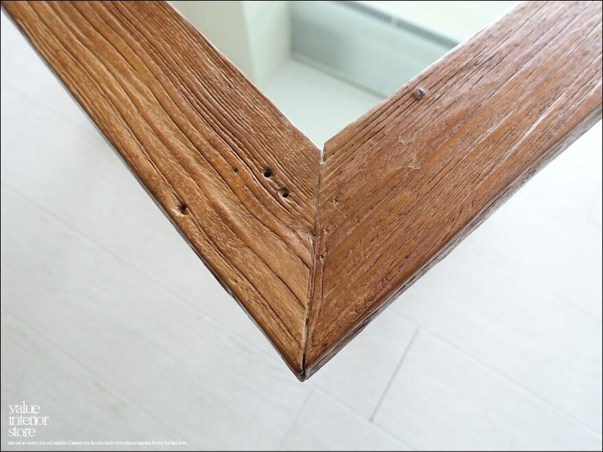 オールドチークならではの味わい深い木目が存分に生かされた厚めのフレームが印象的なミラー。