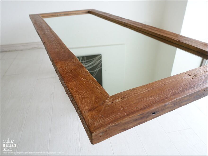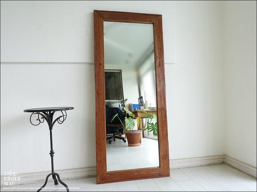 オールドチーク総無垢 ミラー140cm L/12 姿見 鏡 全身鏡 古材 全身用 手作り ナチュラル レトロ 世界三大銘木 送料無料 60cm x 140cm