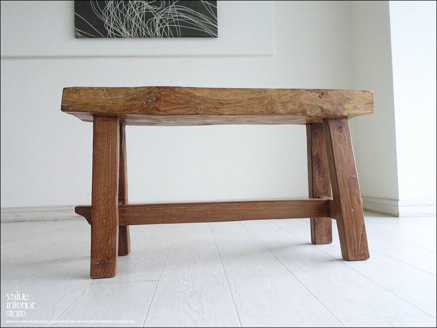 オールドチーク無垢材ベンチ UF12 長椅子 古材家具 一枚板 総無垢 ナチュラル 椅子 イス チェア シンプル 木製家具 世界三大銘木 幅80cm