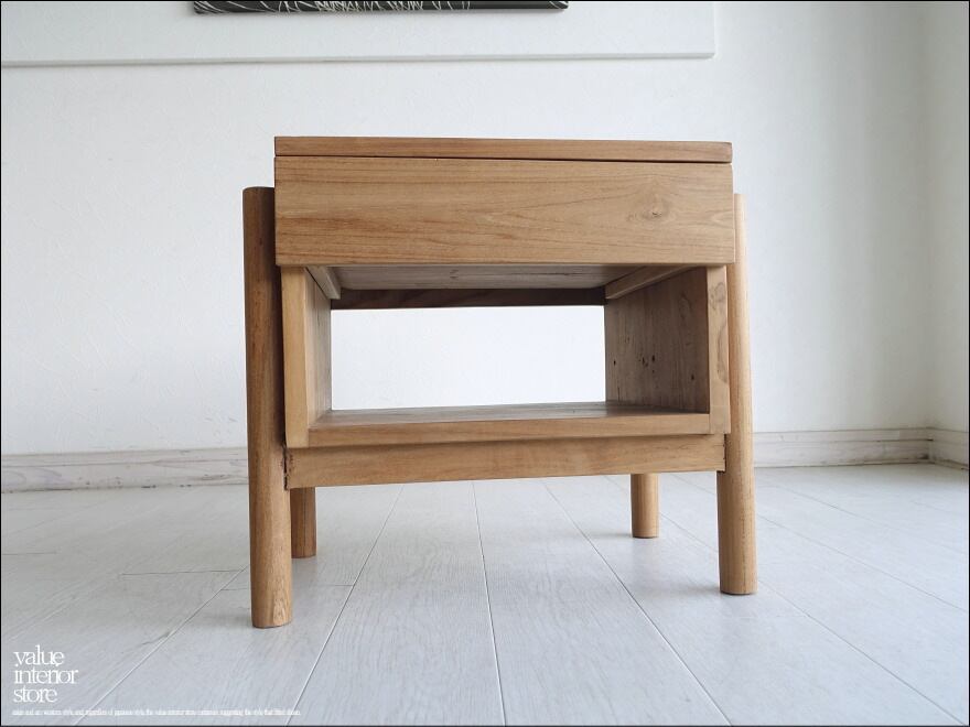チーク無垢材 ベッドサイドキャビネットKreis N サイドテーブル ナイトキャビネット ナチュラル 収納 銘木家具