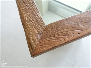 オールドチークならではの味わい深い木目が存分に生かされた厚めのフレームが印象的なミラー。