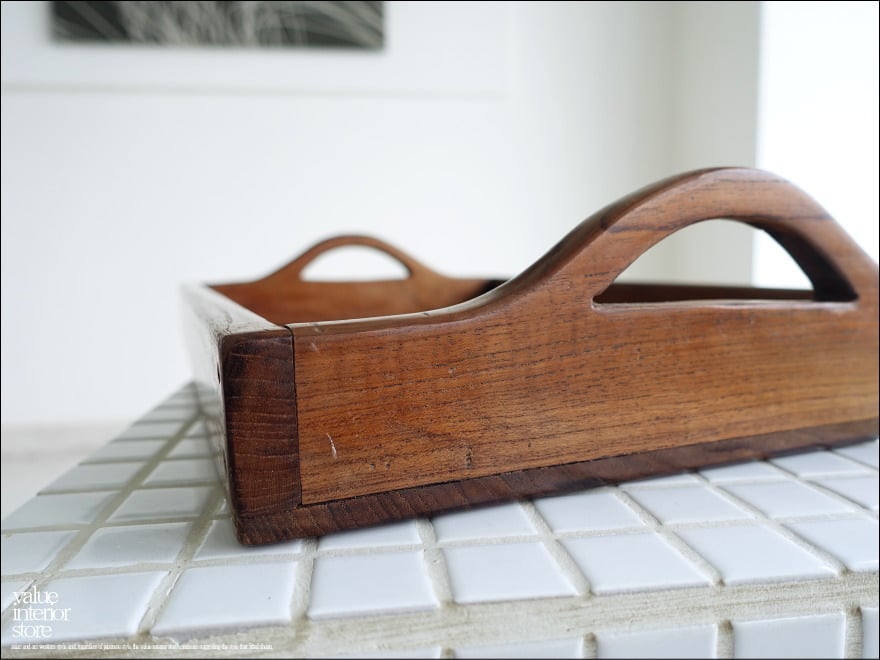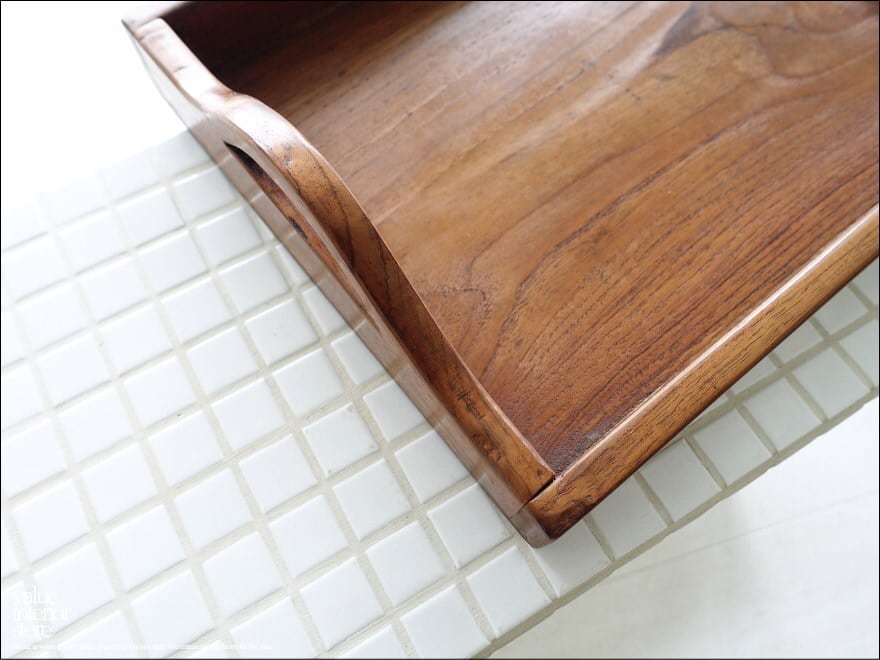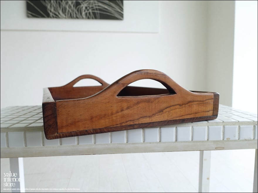 こちらは削り出して作られており、チーク独特の色合いも何とも言えず素敵です。サービングトレイとしては少し大きさがありますので、小物入れや商品のディスプレイとしてお勧めです。滅多にお目にかかれない渋いお品です。