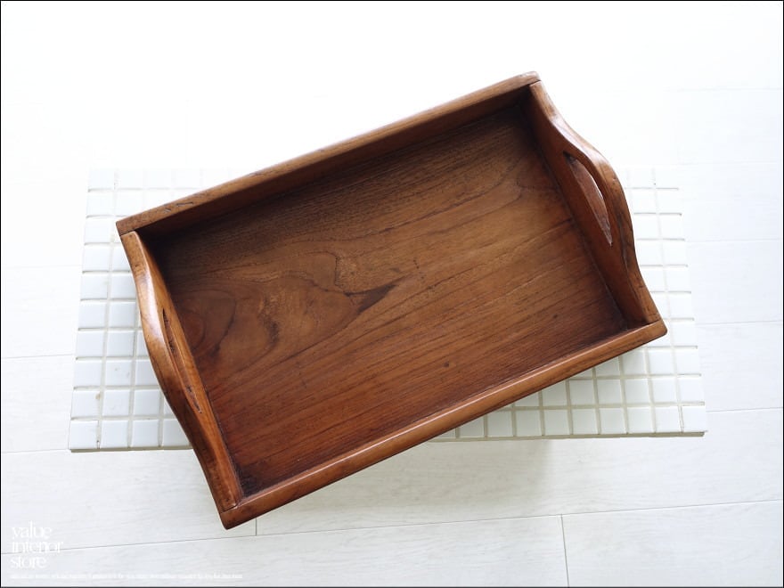 チーク無垢材 ヴィンテージトレイI/2 お盆 サービングトレイ 什器 ウッドトレイ レトロ 再生品 一点物 幅42×奥28.5cm 送料無料