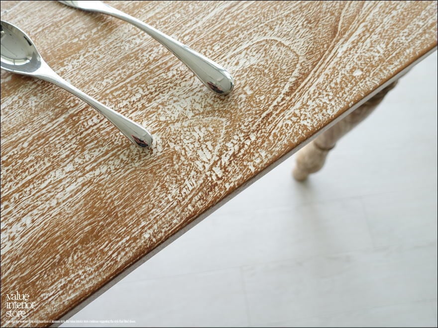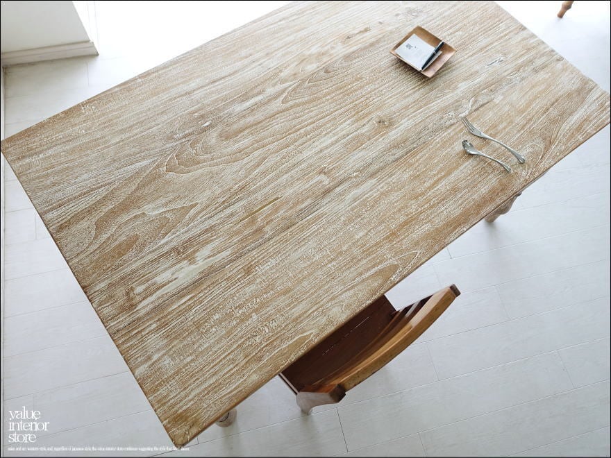 一目見ただけで木目の味わい深さを感じられるオールドチークのダイニングテーブル。