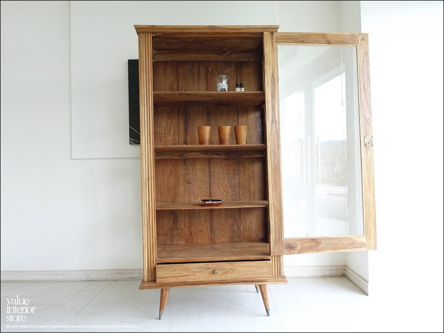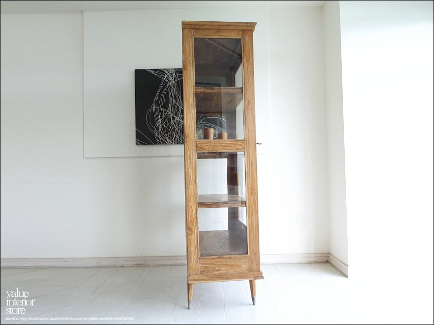 チーク無垢材 ヴィンテージキャビネットN 食器棚 ショーケース 陳列棚 什器 アンティーク飾り棚 再生家具 表面再仕上 三大銘木 送料無料
