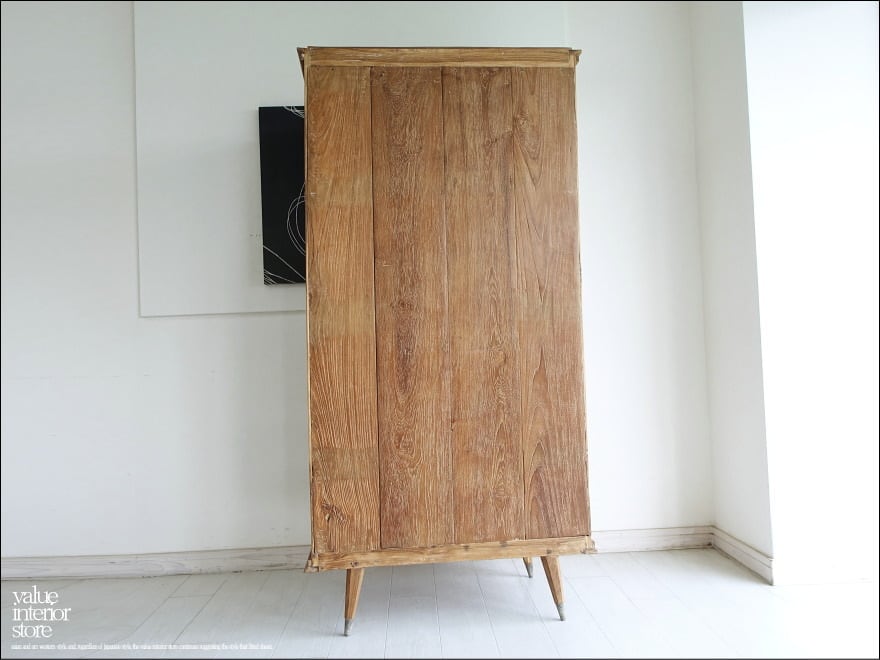 古い歴史を感じさせる佇まいが魅力のチーク総無垢のアンティークキャビネット。