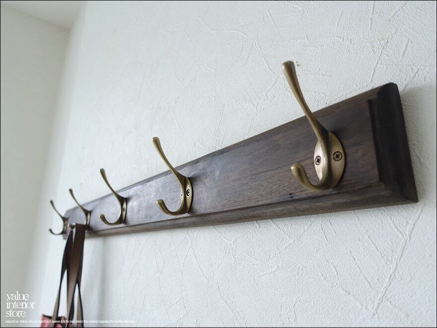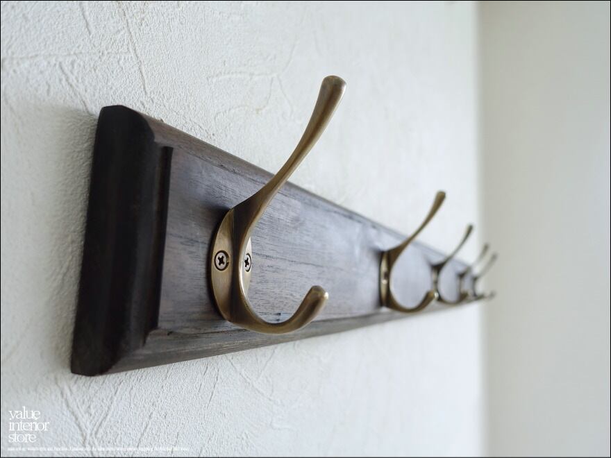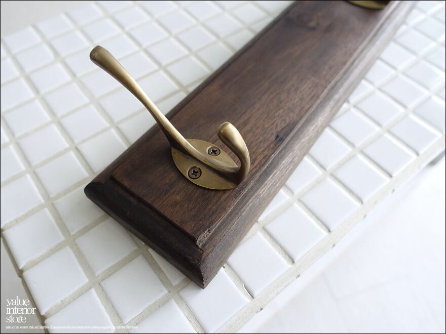 1点1点手作りで、裏面の壁に設置する金具にも真鍮金具を使用しており、質の良さを十分に感じさせてくれます。ベースのチークは、 渋く落ち着いたティーブラウンで塗装しています。キッチンや玄関に、また、お部屋の小物掛けにどうぞ。