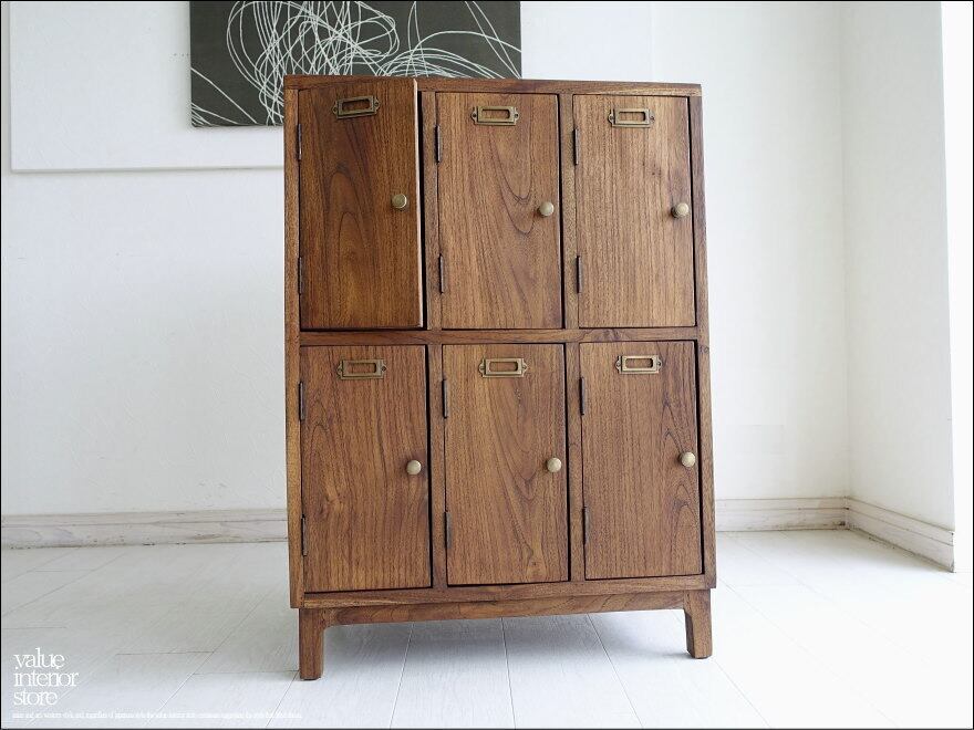 チーク無垢材 6ロッカーMed 収納家具 収納庫 6人用ロッカー キャビネット 靴箱 無垢材家具 総無垢 銘木家具 送料無料