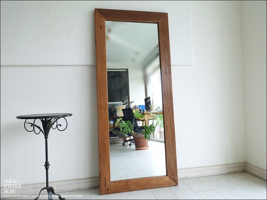 オールドチーク総無垢 ミラー140cm L/21 姿見 鏡 全身鏡 古材 全身用 手作り ナチュラル レトロ 世界三大銘木 送料無料 60cm x 140cm