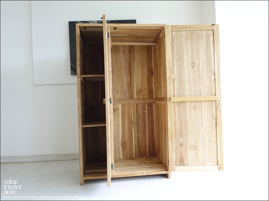 チーク材のナチュラルで上品な質感が魅力の3ドアロッカー。