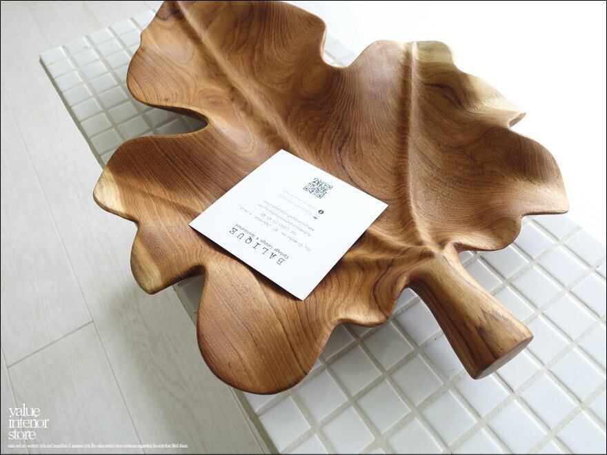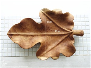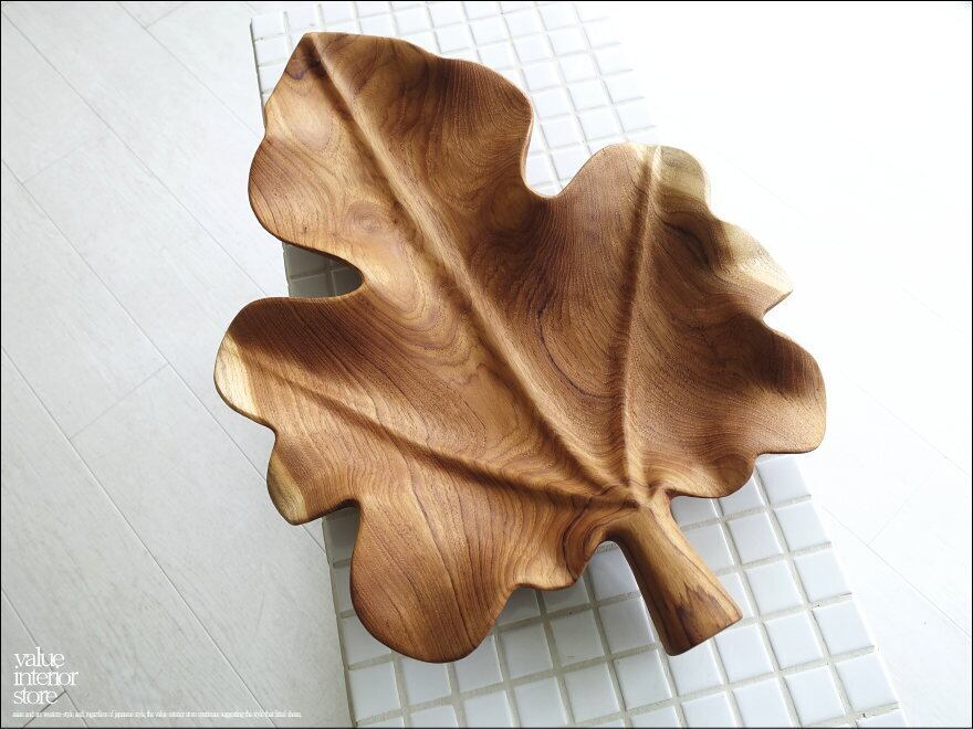 チーク無垢材 大型leafプレートN01 大皿 盛り皿 小物入れ サラダボウル 木製食器 菓子鉢 手作り ナチュラル 幅45cm