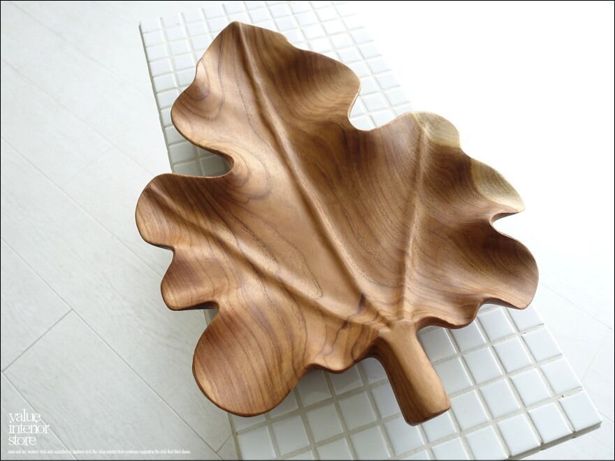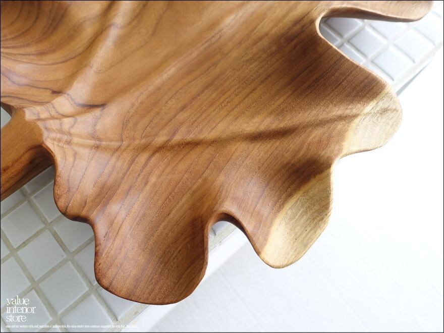 チーク無垢材 大型leafプレートN05 大皿 盛り皿 小物入れ サラダボウル 木製食器 菓子鉢 手作り ナチュラル 幅45cm