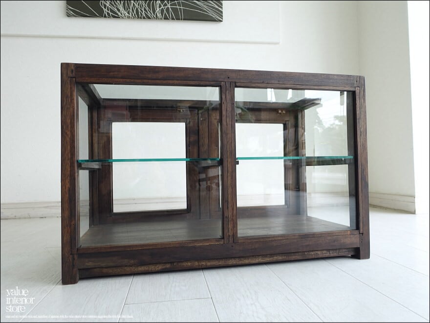 昔ながらの古いパン屋さんや駄菓子屋さんにあるような可愛いガラスケース。フレームは贅沢にチーク総無垢で、金具は真鍮製を使用いたしました。5面ガラスでどの角度からも中がキレイに見えますので、お店のショーケースとしてもお使いいただけます。また扉は左右2つに分かれていて、それぞれに真鍮ロックも付いています。アンティークではありませんが古くからそこにあったような温か味のある仕上がりになっています。カフェなどのパン用ショーケース、食器棚、小物のディスプレイなど幅広くお使いください。