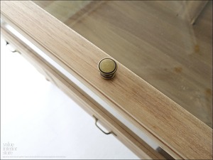 ・素材 : チーク総無垢、ガラス、真鍮(取っ手)、(引き出しの底のみ合板)