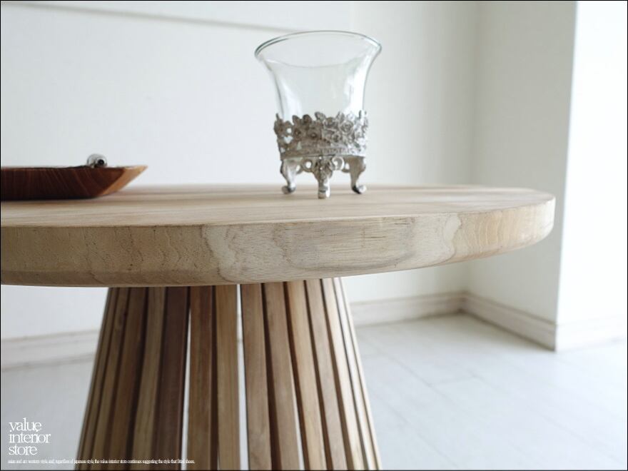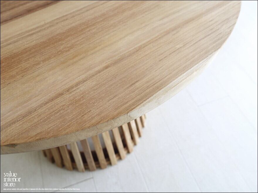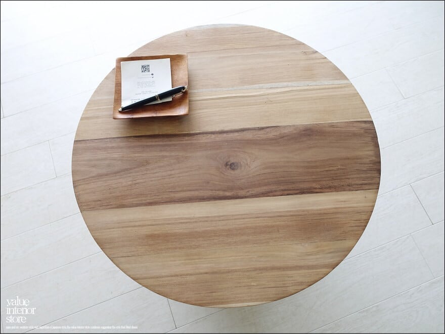 一目見ただけで木目の味わい深さを感じられるチークのテーブル。素朴で癒される雰囲気があります。