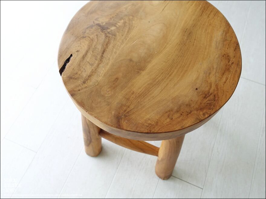 フレーム共にシッカリとした作りのチークスツール。木目が美しく素朴で魅力的です。椅子以外にもちょっとした飾り台としてもお使いいただけるデザインです。ショップなどのディスプレイ台、花台としても素敵ですね。