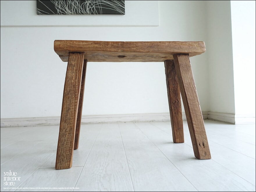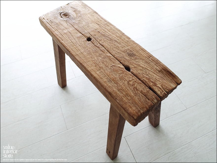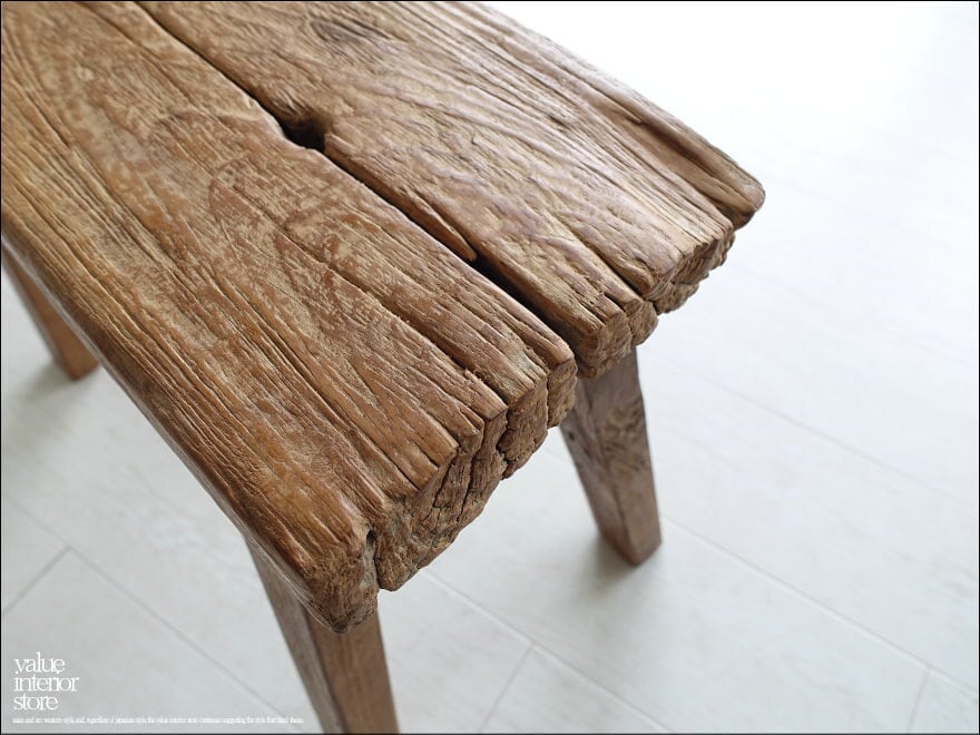 オールドチーク無垢材スツールPN01 ベンチ 椅子 古材家具 一枚板 総無垢 イス 一点物 プリミティブ 世界三大銘木