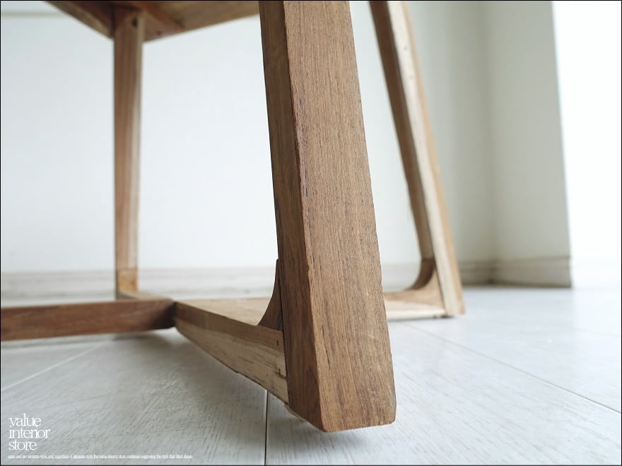 チークの硬く張りのある特徴が伝わってきて、脚と天板のバランスもとても上品です。無垢材のチークの良さを存分に楽しんでいただける、とてもステキなカフェテーブル。