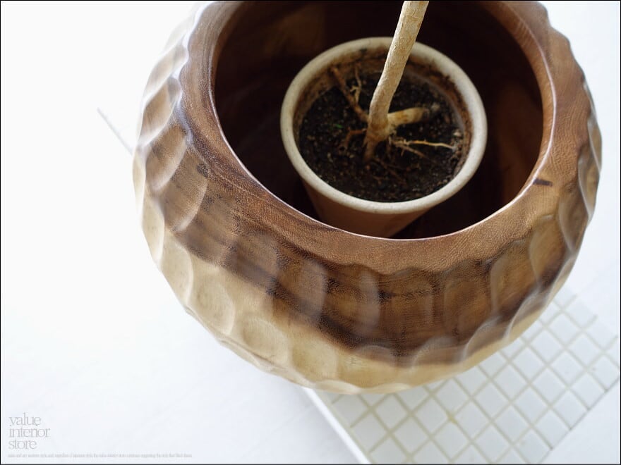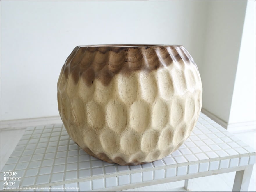 無垢材 プランツカバーBola 鉢カバー プランツポット 植木鉢カバー 樹鉢 木鉢 入れ物 ナチュラル 削り出し モンキーポッド 送料無料