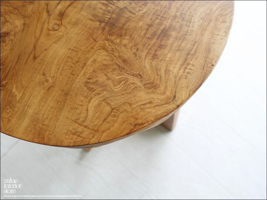 ナチュラルな座面には、チークの個性的な木目と形が現れています。