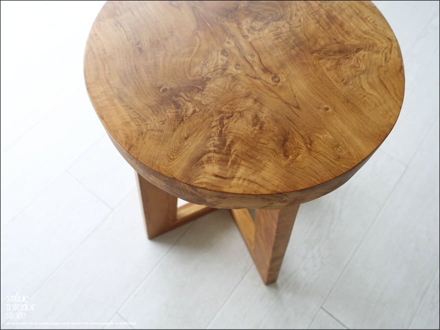 フレーム共にシッカリとした作りのチークスツール。木目が美しく素朴で魅力的です。椅子以外にもちょっとした飾り台としてもお使いいただけるデザインです。ショップなどのディスプレイ台、花台としても素敵ですね。