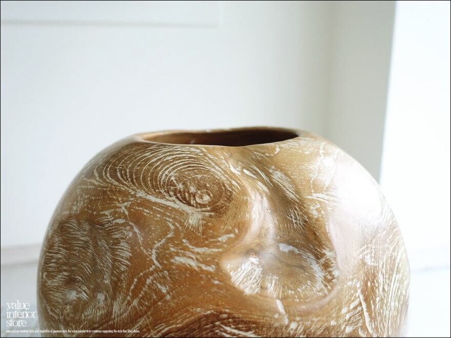 プリミティブなチーク材の味のある木目が魅力的な鉢カバー。