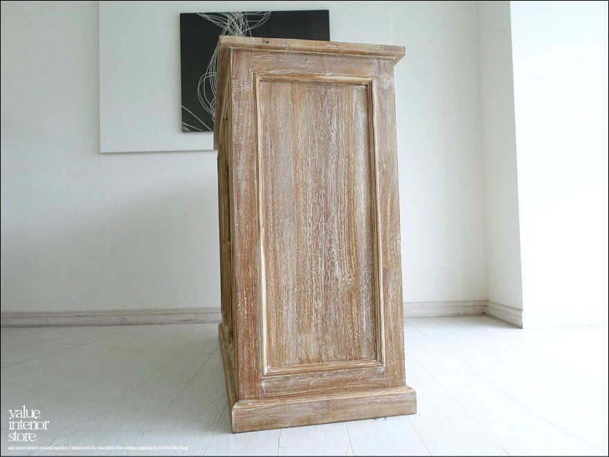 表面を軽く削り、凹みに薄っすらと白色を残す仕上げ方法によりシャビーな質感に仕上がっています。