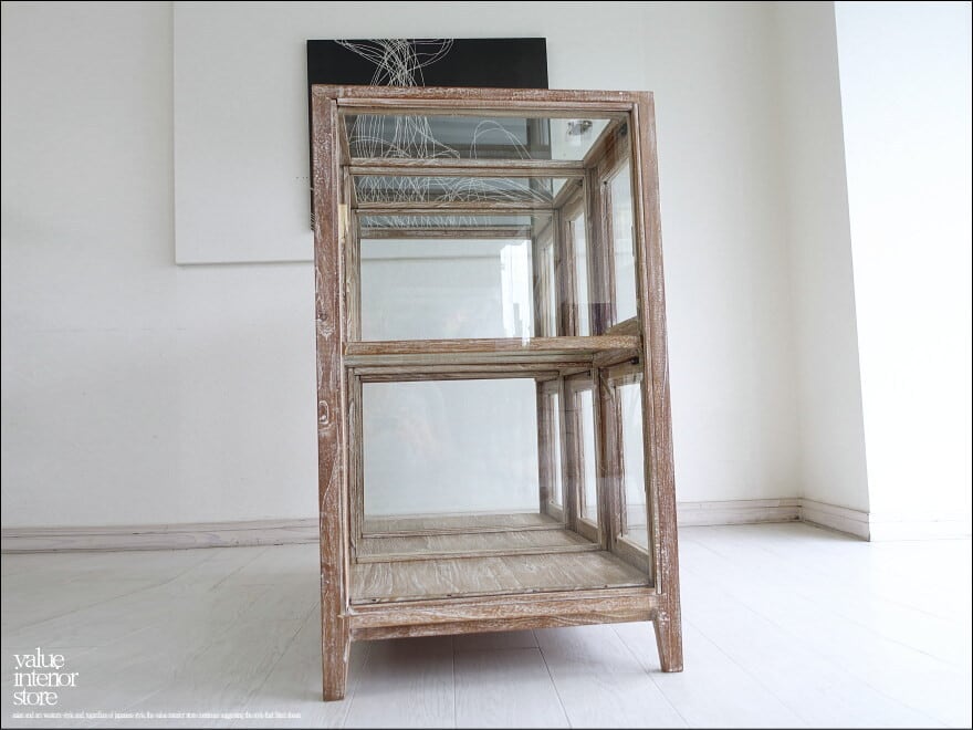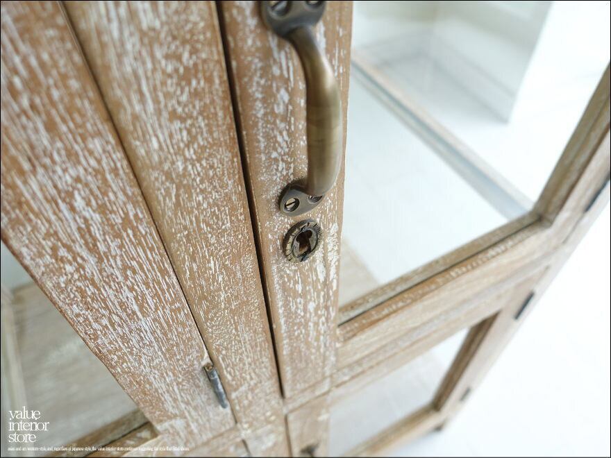 ・材質 : チーク総無垢、ガラス、真鍮(引き出し取っ手)