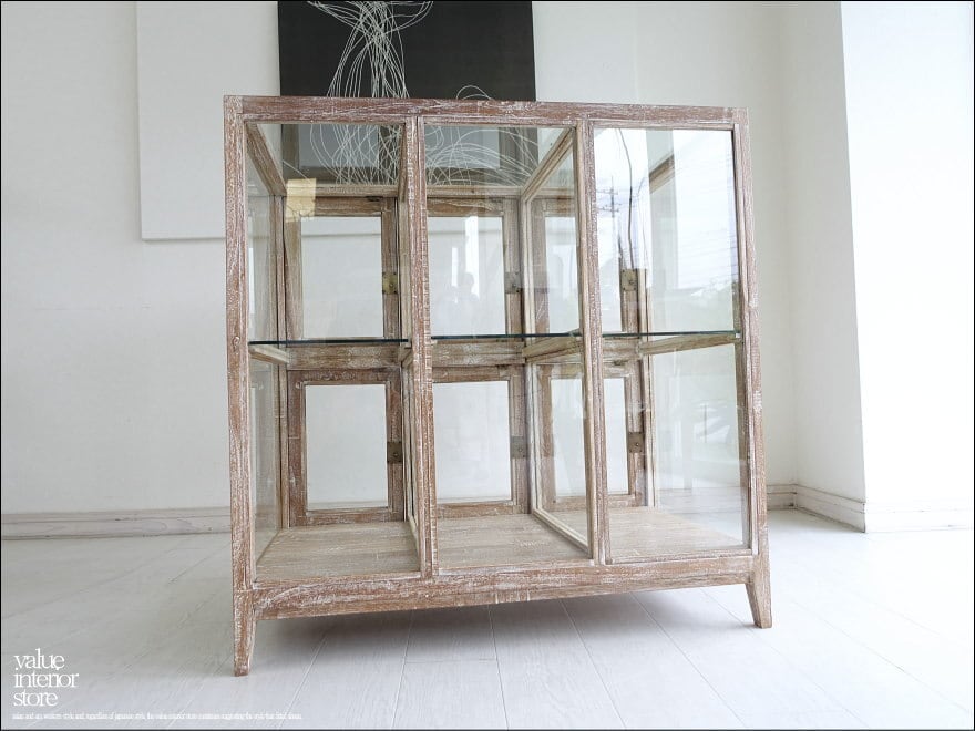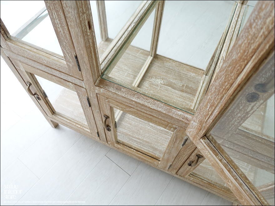「 ニイミ様 オーダーショーケース + カウンター 」 総無垢材 ガラスパンケース6枚扉WW + カウンターRAW 受付カウンター 店舗什器 ショーケース キャッシャーカウンター シャビー 銘木家具