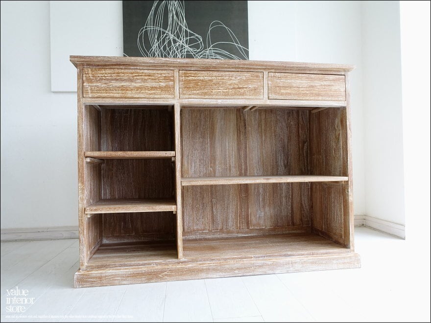 ◇日本製のような正確さは無いかもしれませんが、1点1点出来上がるまでの殆どの製作工程を手作業で行う、インドネシア家具職人たちの手づくり製法はとても暖か味が感じられます。細かな傷、ひび割れやフシ穴、お色の濃淡、また反りなどの無垢材特有の”暴れ”や修理痕が見受けられる場合がございますが、無垢材の素材や特徴、また手づくりのテイストとして工業品にはない自然の質感をお楽しみ下さい。