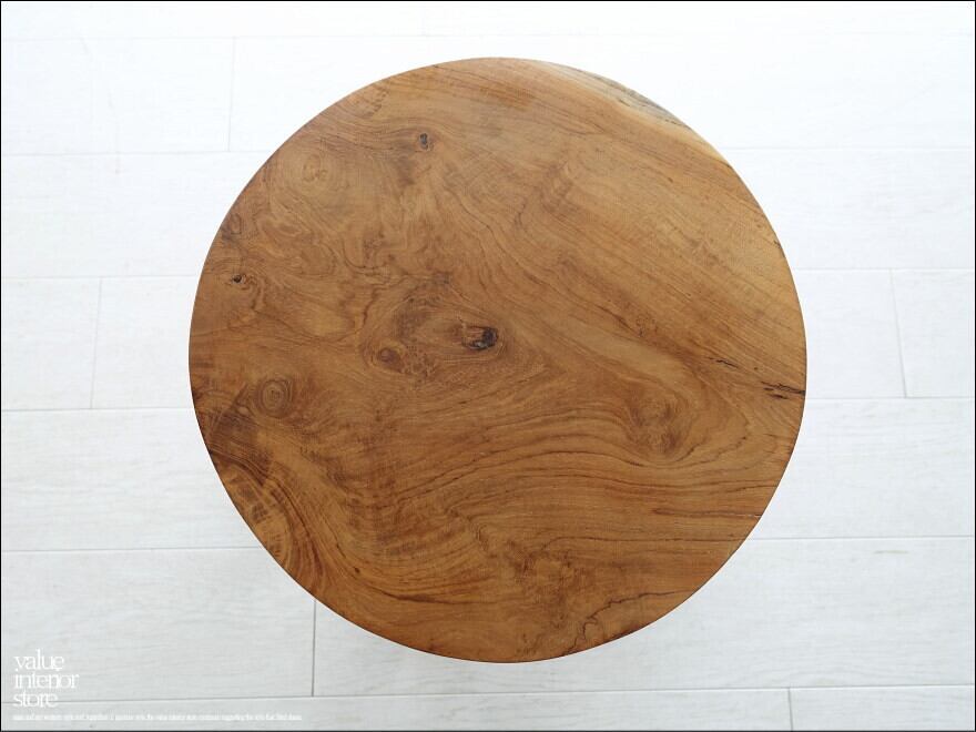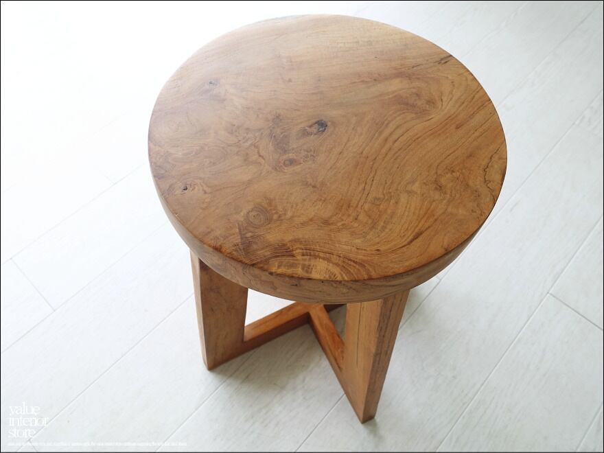 フレーム共にシッカリとした作りのチークスツール。木目が美しく素朴で魅力的です。椅子以外にもちょっとした飾り台としてもお使いいただけるデザインです。ショップなどのディスプレイ台、花台としても素敵ですね。