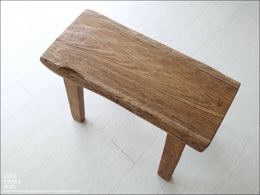 オールドチーク無垢材スツールPN02 ベンチ 椅子 古材家具 一枚板 総無垢 イス 一点物 プリミティブ 世界三大銘木