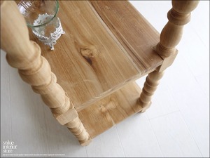 ナチュラルで素朴な質感は、経年変化でいわゆるチーク色へ徐々に変化していくところも楽しみの一つです。余分な装飾を無くしたシンプルな棚板と、丸く柔らかな印象の脚とのバランスがとってもかわいいですよ♪