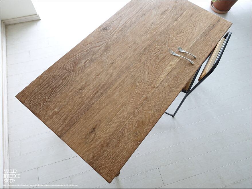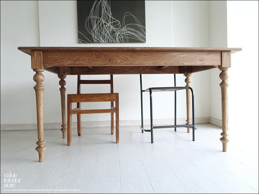 チーク無垢材 ヴィンテージダイニングテーブル / Anq11 無垢材テーブル 什器 古材家具 陳列台 表面再仕上済 世界三大銘木 幅150cm