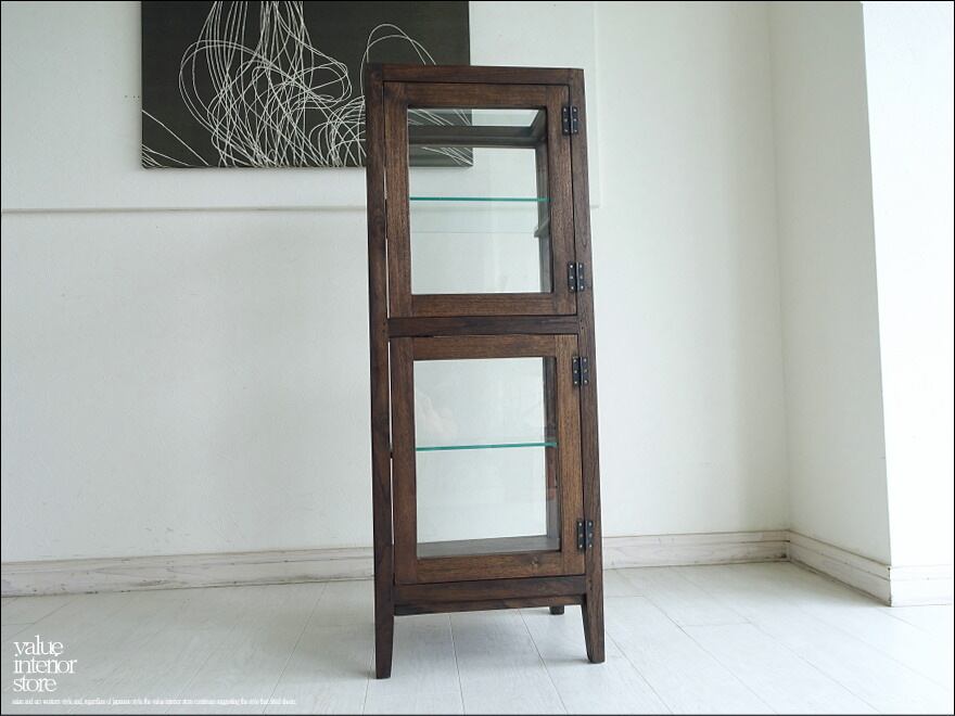 「 ヤマグチ様 サイズオーダーキャビネット 」無垢 ガラスパンケースW ショーケース 陳列ケ-ス シンプル 飾り棚 什器 コレクションケース チーク材 食器棚 展示ケース 和 銘木