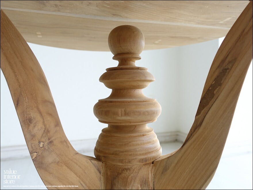 落ち着いた大人の雰囲気があります。チークの硬く張りのある特徴を引き出す丸型の天板を美しい脚が支えていて、そのバランスがとても上品です。