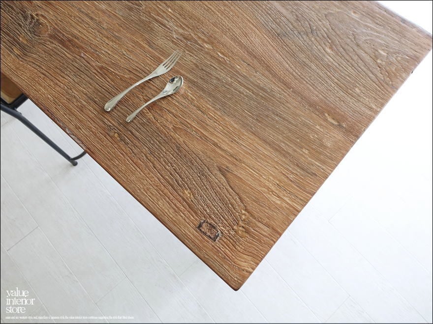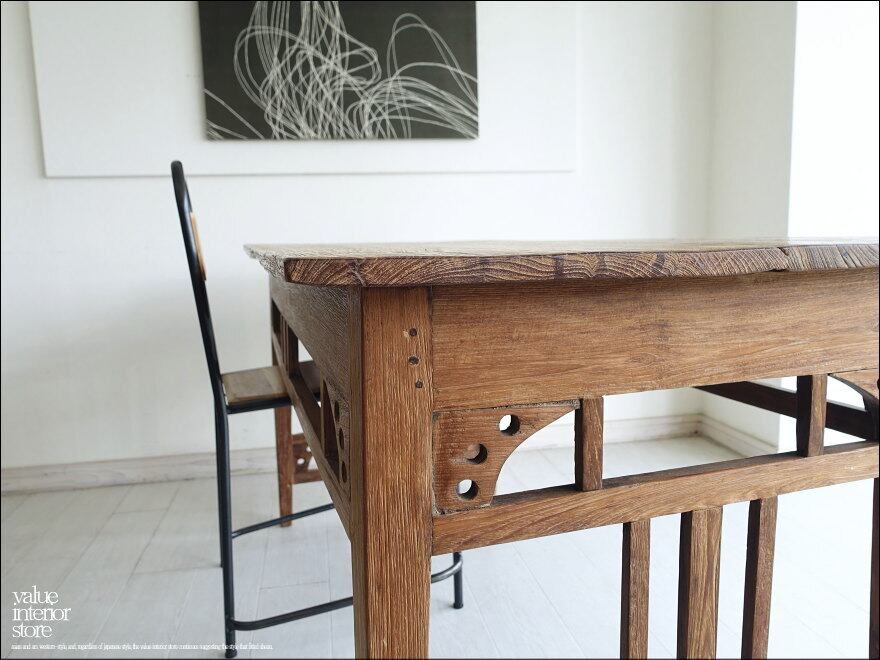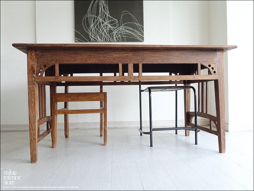 チーク無垢材 ヴィンテージテーブルAnq12 ダイニングテーブル 什器 デスク 机 一点物 再生家具 表面再仕上済 世界三大銘木